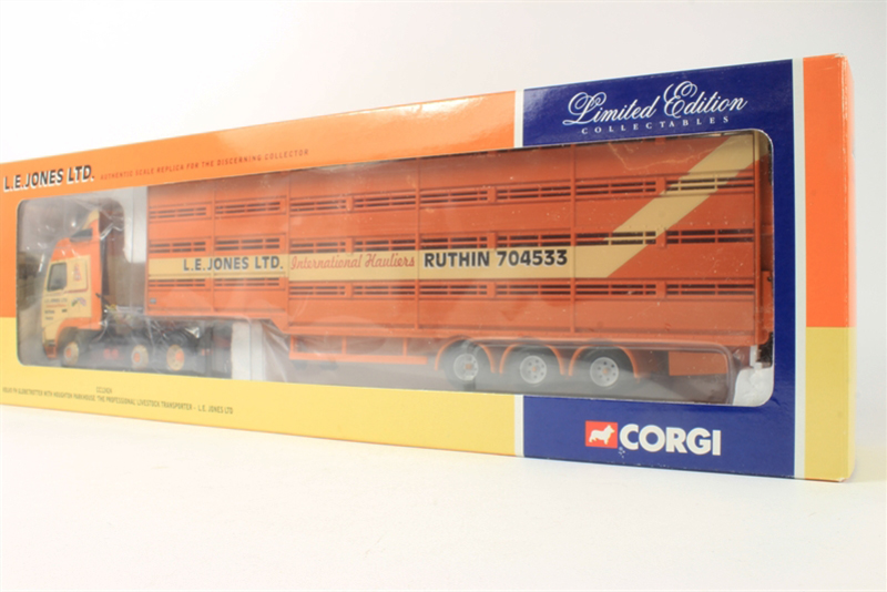 VOLVO FH12 L.E. Jones LtdRéférence OCCCC12424Marque : SCANIAFabricant : CORGIEchelle : 1/50° VOLVO FH 12 Globetrotter 6x2, semi remorque bétaillère 3 essieux, Transport L.E Jones Ltd, Ruthin, GB |