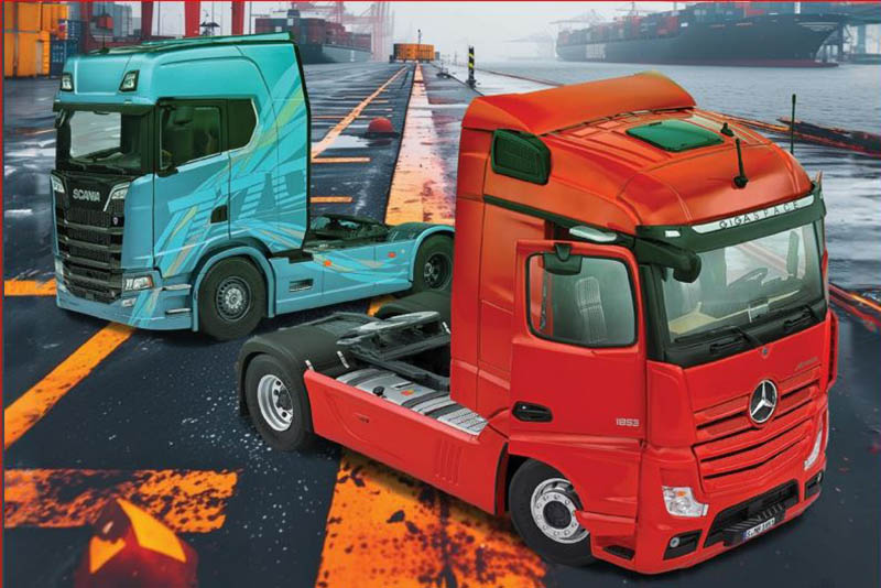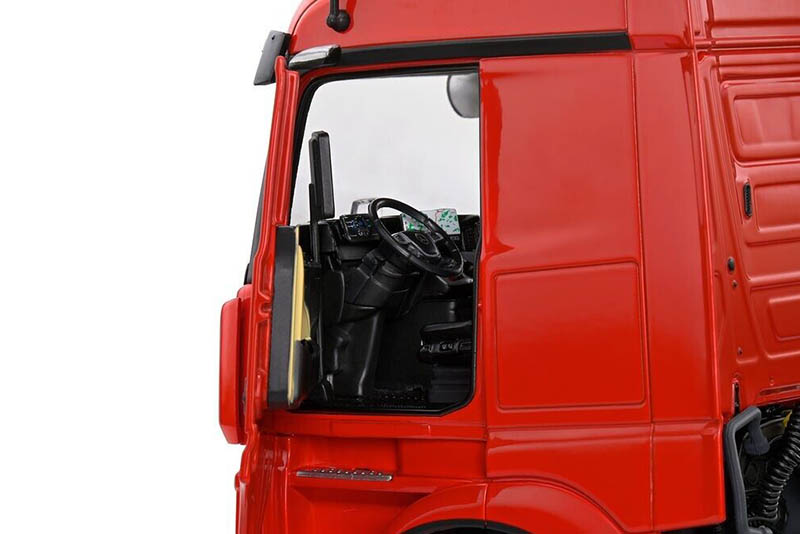 MB Actros rouge 1/24°Référence SOL2400201Marque : SCANIAFabricant : SOLIDOAnnée : 2024 Echelle : 1/24° MERCEDES BENZ Actros de 2019 4x2, portes ouvrantes, train avant directionnel |