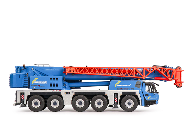 GROVE GMK5150XL FelbermayrRéférence CON2125.04Marque : GROVEFabricant : CONRADAnnée : 2024 Echelle : 1/50° Grue automotrice GROVE GMK5150XL, Felbermayr |