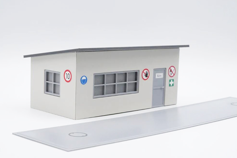 Bascule pour camion + bureauxRéférence DRU150203Marque : AccessoireFabricant : 3DDRUCKFACTORYAnnée : 2024 Echelle : 1/50 Balance + bureaux + autocollants, en kit, dimensions environ L140mm x P70mm x H60mm, balance, L300mm x L65 mm x 1 mm, Impression 3D |