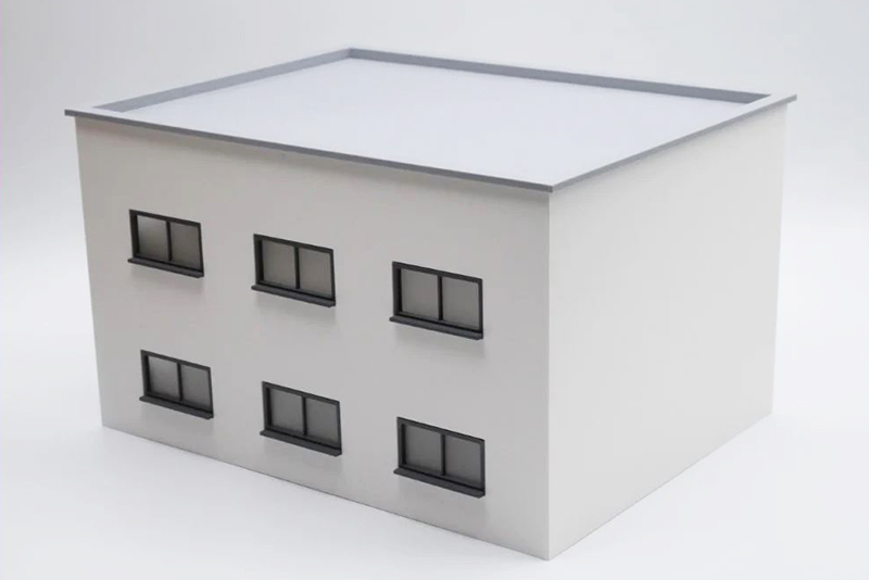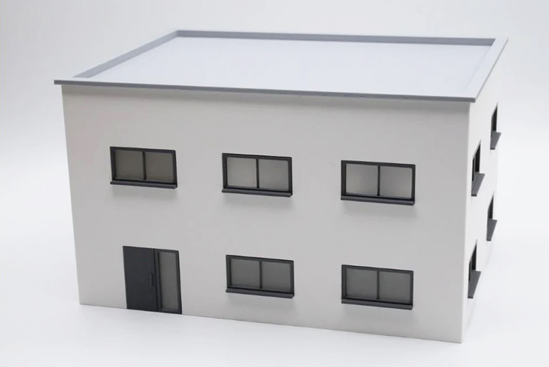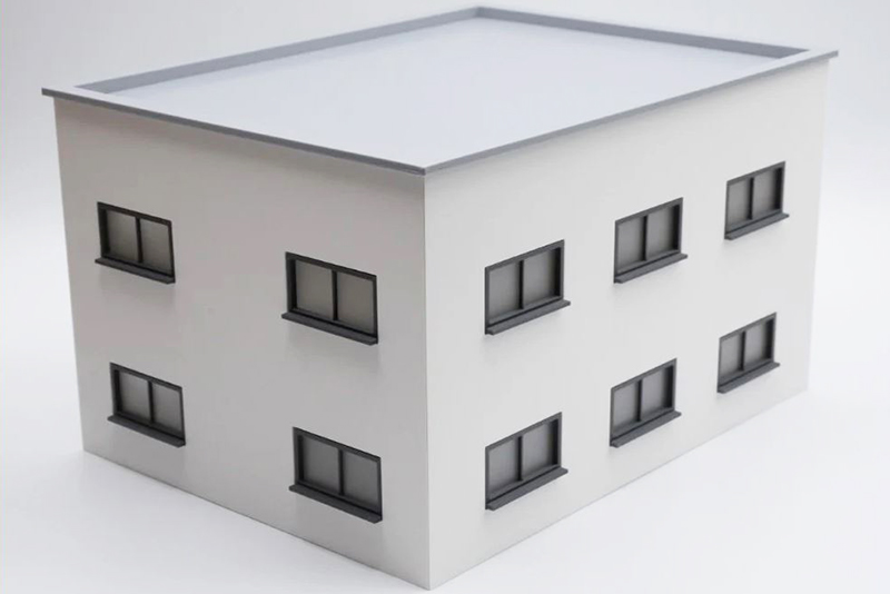Immeuble de bureaux en kit anthraciteRéférence DRU150252Marque : AccessoireFabricant : 3DDRUCKFACTORYAnnée : 2024 Echelle : 1/50 Immeuble de bureaux, blanc/anthracite. Le kit se compose de : 4 murs, toit, fenêtres, portes, Dimensions L230mm x P175mm x H135mm. Impression 3D |