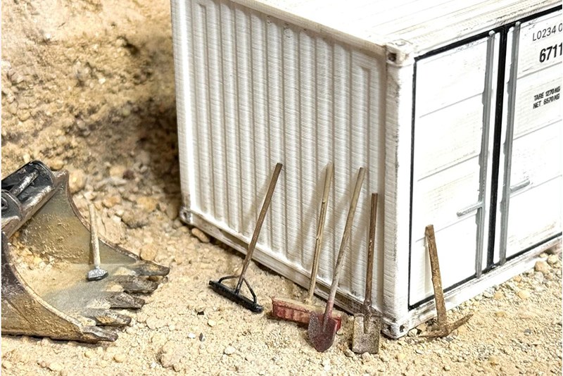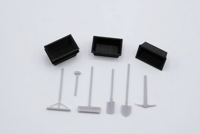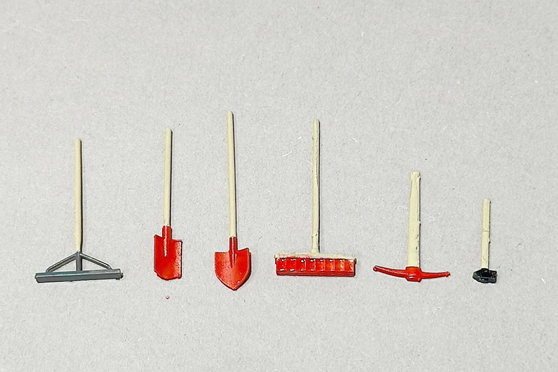 SET D'OUTILSRéférence DRU150180Marque : AccessoireFabricant : 3DDRUCKFACTORYAnnée : 2024 Echelle : 1/50 4 bacs à mortier noirs, 2 pelles, un balai, une pioche, une bêche, un épandeur de goudron, une masse, non peints, avec matériel de support, Impression 3D |
