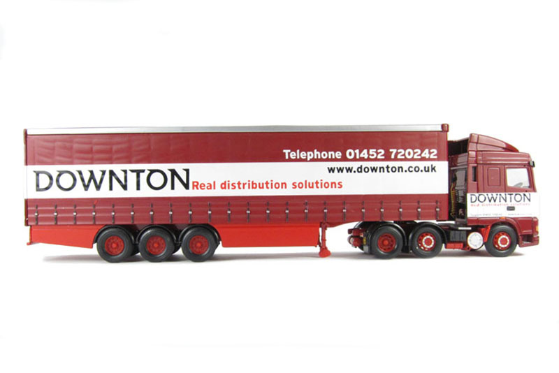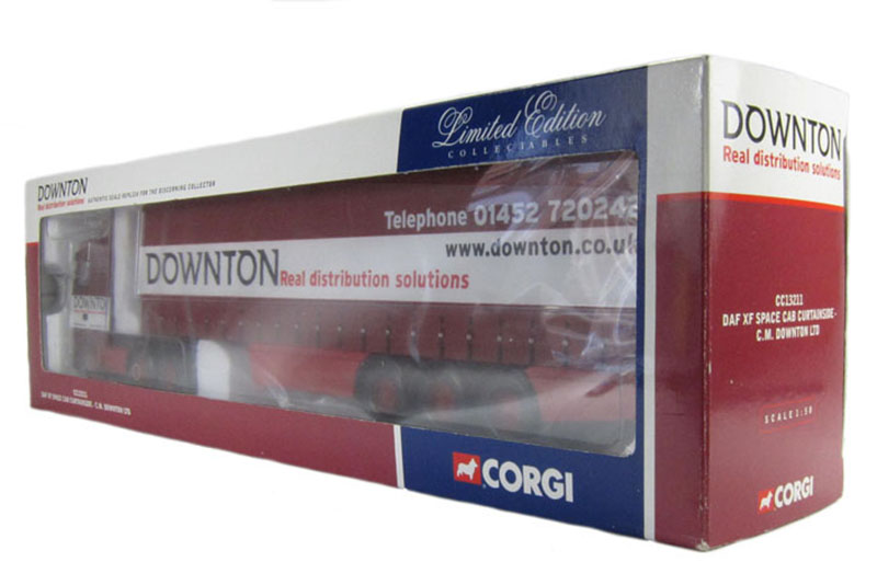 DAF XF DowntonRéférence OCCCC13211Marque : DAFFabricant : CORGIEchelle : 1/50° DAF XF Space 6x2 semi remorque bâchée 3 essieux, Transport Downton, GB |