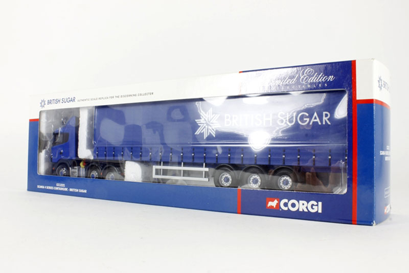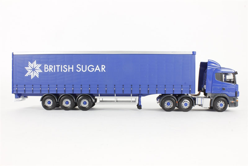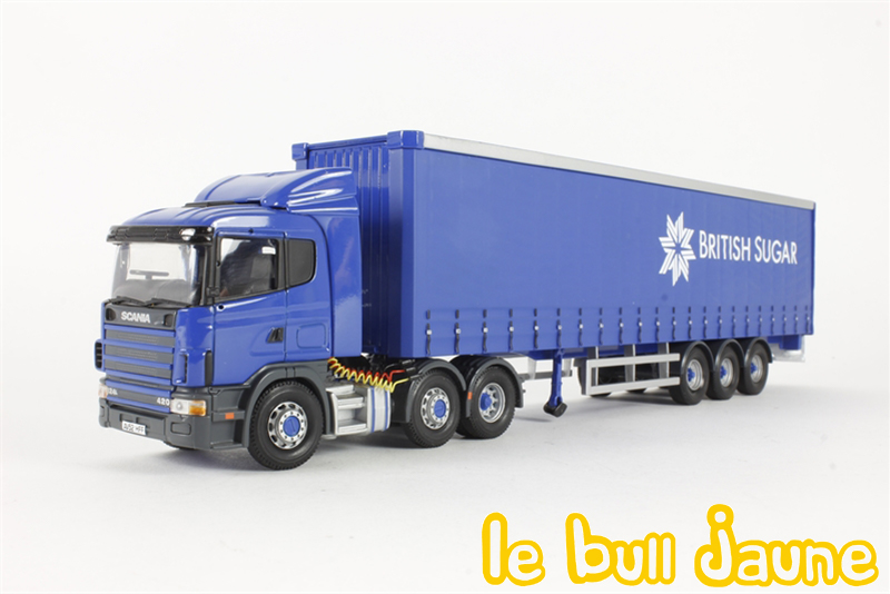 SCANIA British SugarRéférence OCCCC12221Marque : SCANIAFabricant : CORGIEchelle : 1/50° SCANIA 6x2 semi remorque bâché 3 essieux, Transport British Sugar, GB |