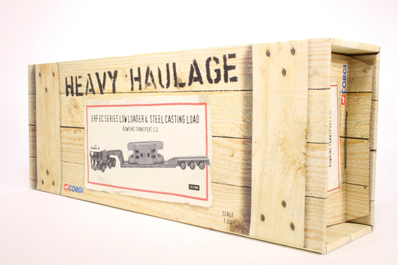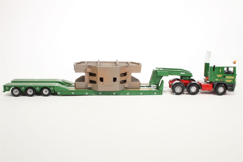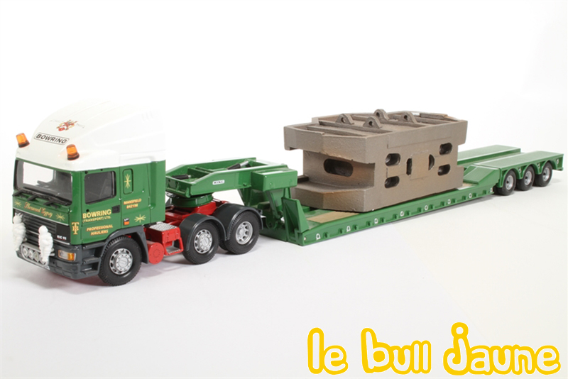 ERF EC Bowring TransportRéférence OCCCC11909Marque : ERFFabricant : CORGIEchelle : 1/50° ERF EC 6x2 semi remorque surbaissée 3 essieux + charge en acier moulé, Bowring Transport, GB |