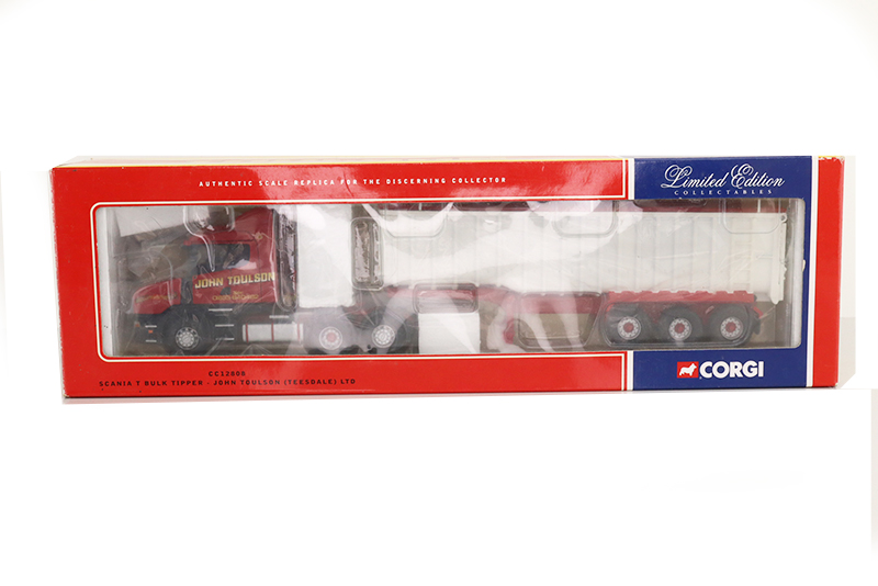 SCANIA T John ToulsonRéférence OCCCC12808Marque : SCANIAFabricant : CORGIEchelle : 1/50° SCANIA T 6x2 semi remorque benne basculante 3 essieux, Transport John Toulson, Middleton à Teesdale, GB |
