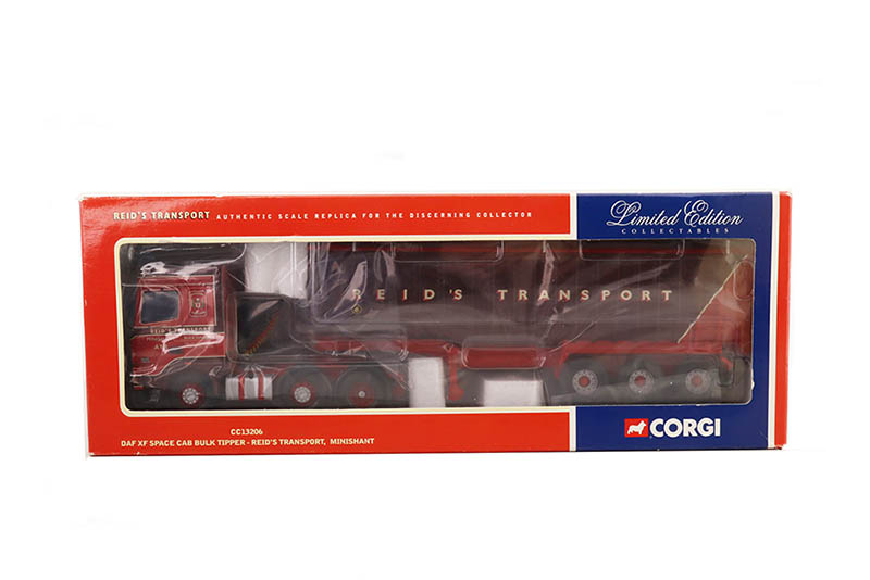 DAF XF Reid'sRéférence OCCCC13206Marque : DAFFabricant : CORGIEchelle : 1/50° DAF XF Space Cab 6x2 semi remorque basculante 3 essieux, Reid's Transport, Minishant, Ayr, GB |