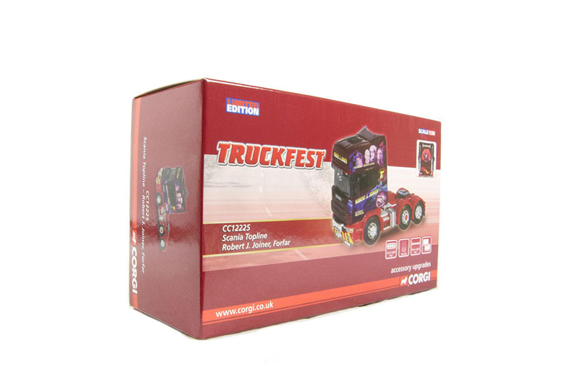SCANIA Robert J. JoinerRéférence OCCCC12225Marque : SCANIAFabricant : CORGIAnnée : 2009 Echelle : 1/50° SCANIA 4 Topline 6x2, Transport Robert J. Joiner, Forfar, GB |