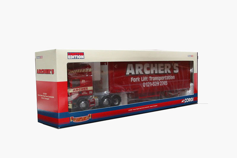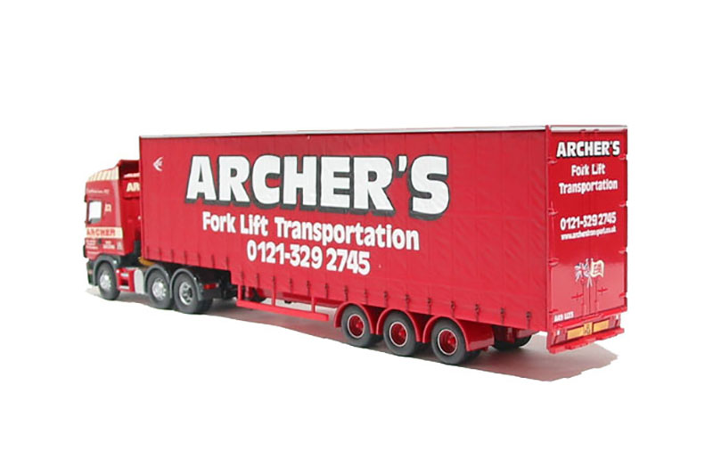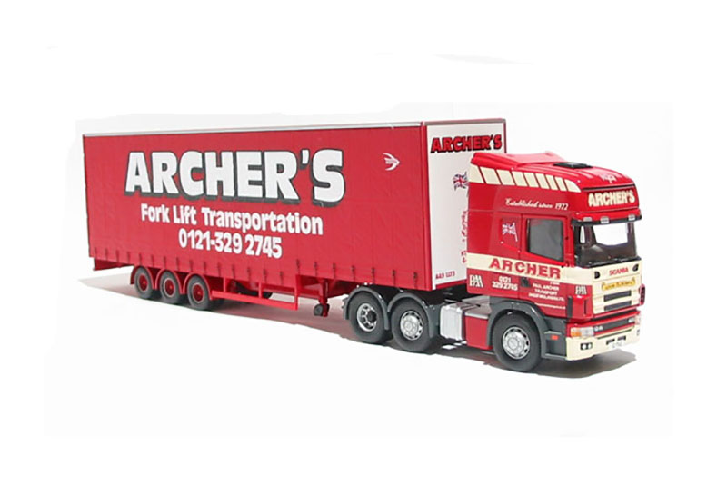 SCANIA Archer's TransportRéférence OCCCC12927Marque : SCANIAFabricant : CORGIAnnée : 2005 Echelle : 1/50° SCANIA Topline 6x2 semi remorque Tautliner 3 essieux, Paul Archer's Transport, West Midlands, GB |