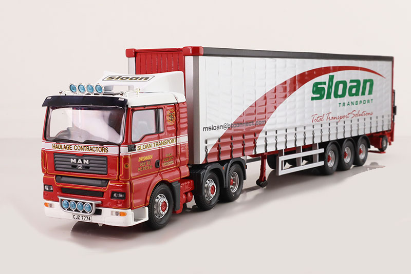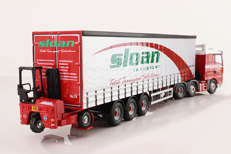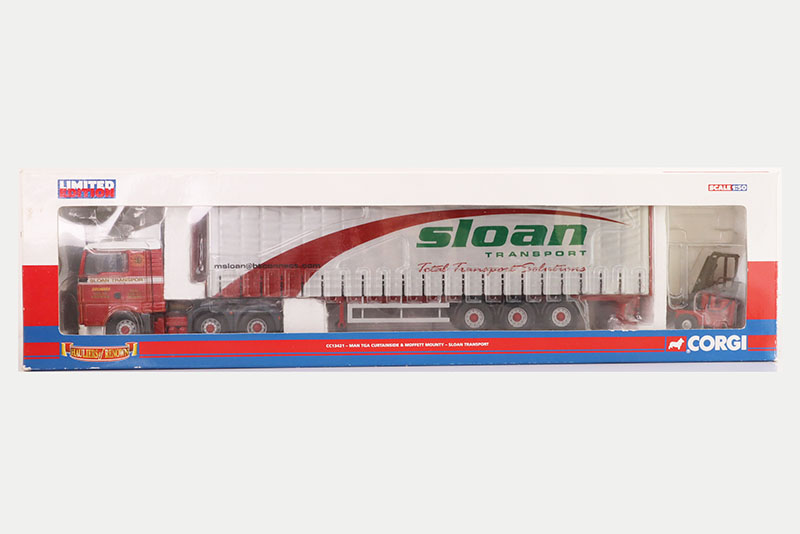 MAN TGA SloanRéférence OCCCC13421Marque : M.A.NFabricant : CORGIAnnée : 2006 Echelle : 1/50° M.A.N. TGA XXL 6x2 semi remorque Tautliner 3 essieux et Moffett Mountyline, Sloan Transport, GB |