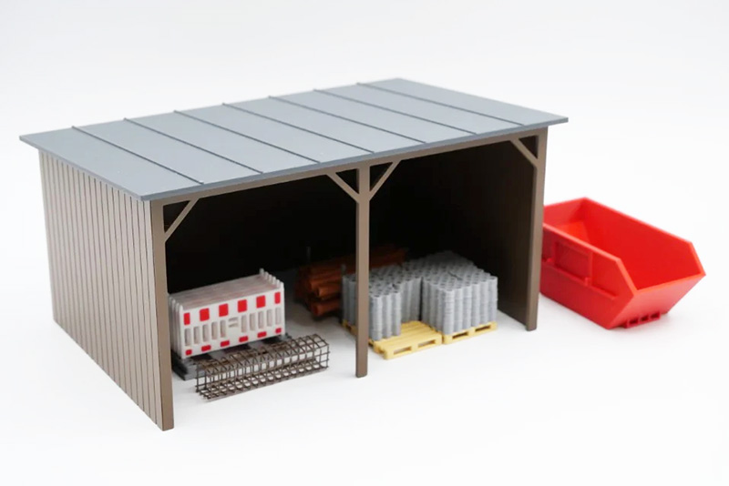Remise de rangementRéférence DRU150205Marque : AccessoireFabricant : 3DDRUCKFACTORYAnnée : 2025 Echelle : 1/50 Hangar en kit, dimensions L150mm x P100mm x H80mm, Impression 3D |