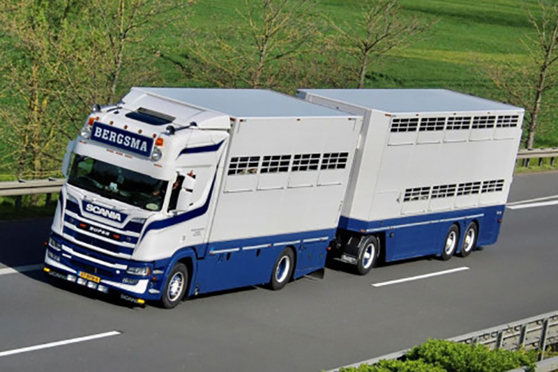 SCANIA R BergsmaRéférence IMC32.0231Marque : SCANIAFabricant : IMC MODELSAnnée : 2025 Echelle : 1/50° SCANIA R Serie High Roof 4x2 Porteur + Remorque 3 essieux bétailllère, Transport Bergsma |