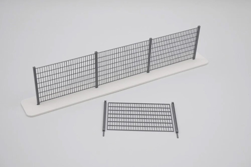 Clôture en treillis métallique argentRéférence DRU150003Marque : AccessoireFabricant : 3DDRUCKFACTORYAnnée : 2025 Echelle : 1/50 10 panneaux de clôture industrielle, 2 poteaux (fin/début), 12 poteaux intermédiaires, Dimensions LxH Maille de clôture 57x37mm, Poteau 40x2x2mm + base 6mm, Impression 3D |