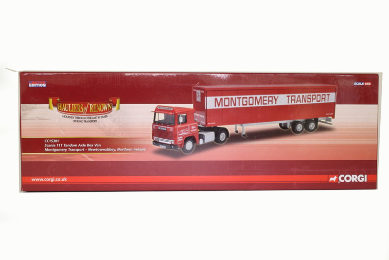 SCANIA 111 MontgomeryRéférence OCCCC15301Marque : SCANIAFabricant : CORGIAnnée : 2010 Echelle : 1/50° SCANIA 111 4x2 semi remorque fourgon 2 essieux, Montgomery Transport, Newtownabbey, GB |