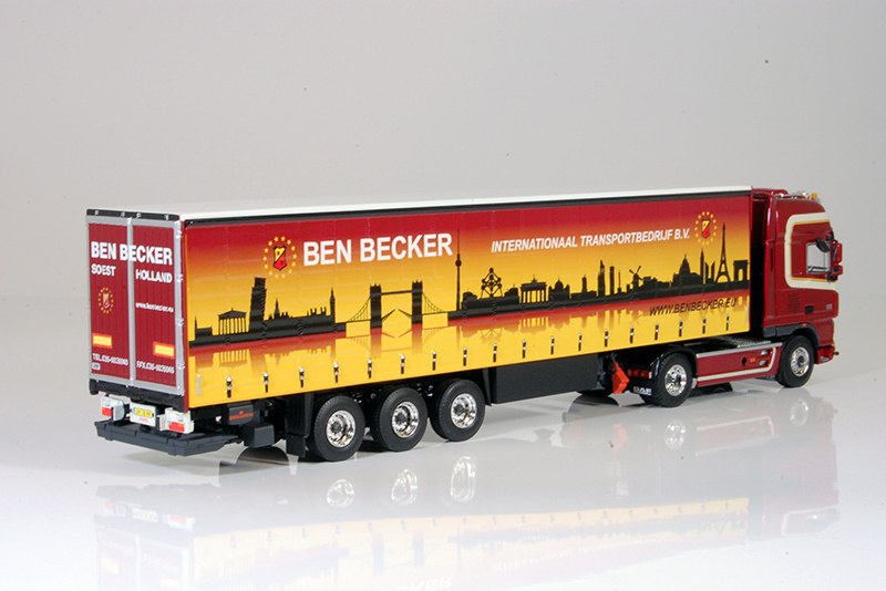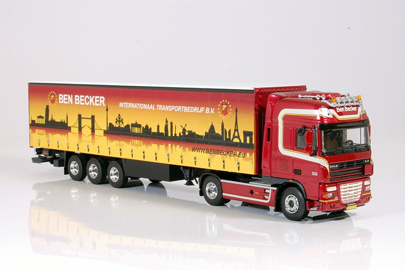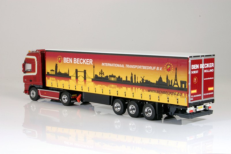 DAF XF105 Ben BeckerRéférence TEO62312Marque : DAFFabricant : TEKNOAnnée : 2011 Echelle : 1/50° DAF XF 105 SSC 4x2 semi remorque tautliner 3 essieux, Transport Ben Becker, Hollande |