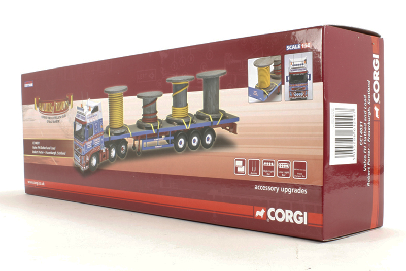 VOLVO FH03 Robert PorterRéférence OCCCC14031Marque : VOLVOFabricant : CORGIAnnée : 2012 Echelle : 1/50° VOLVO FH 03 6xc semi remorque plateau 3 essieux avec chargement, Transport Robert Porter, Fraserburgh, Scotland, GB |