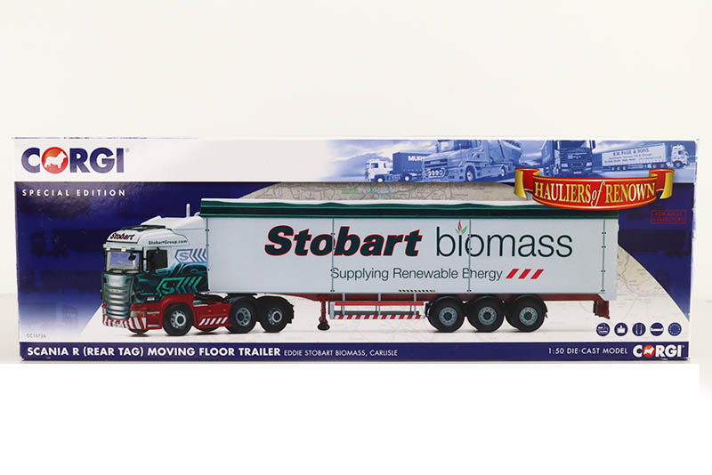 SCANIA R Eddie Stobart BiomassRéférence OCCCC13756Marque : SCANIAFabricant : CORGIAnnée : 2013 Echelle : 1/50° SCANIA R Highline 6x2 semi remorque fond mouvant 3 essieux, Transport Eddie Stobart Biomass, Carlisle, GB |