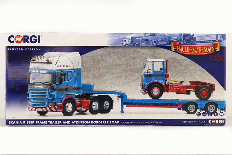 Coffret SCANIA + ATKINSON ScotleeRéférence OCCCC13743Marque : CoffretFabricant : CORGIAnnée : 2013 Echelle : 1/50° SCANIA R Topline 6x2 remorque porte engin 3 essieux + ATKINSON Borderer 4x2, Scotlee Transport, Irvine, Scotland, GB |