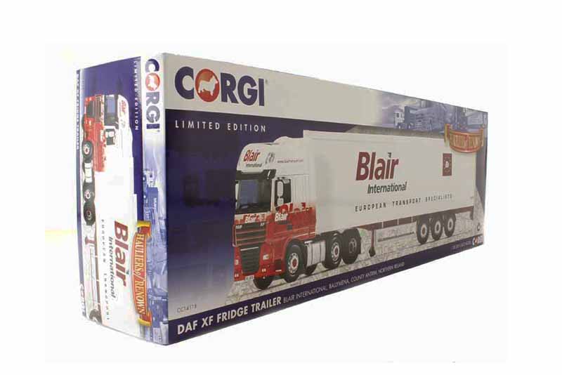 DAF XF105 Blair InternationalRéférence OCCCC14118Marque : DAFFabricant : CORGIAnnée : 2014 Echelle : 1/50° DAF XF 105 SSC 6x2 semi remorque frigorifique 3 essieux, Transport Blair International, Ballymena, County Antrim, GB |